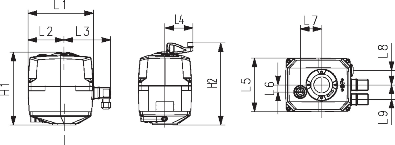 EA25 - 250: ovládání otevřené / zavřené / střední; zpětná vazba polohy otevřená / zavřená / střední připravena k provozu